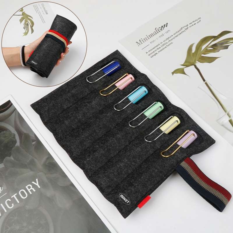 Der Pen Vorhang ist eine stilvolle Möglichkeit, um deine Stifte sicher aufzubewahren und vor Beschädigungen zu schützen. Hergestellt aus weichem Filzstoff, fühlt er sich angenehm in der Hand an und bietet eine sichere Aufbewahrung für alle deine Stifte und Pinsel. Das platzsparende Design ermöglicht es dir, den Pen Vorhang problemlos aufzubewahren oder mitzunehmen. Das Rollen und Entrollen ist einfach und erfordert nur wenige Handgriffe. Der Pen Vorhang eignet sich perfekt für die Aufbewahrung von Stiften in Taschen, Rucksäcken oder Schreibtischschubladen, dank seiner Kompaktheit und Flexibilität. Der robuste und langlebige Filzstoff gewährleistet eine langfristige Lösung für die sichere Aufbewahrung deiner Stifte.
